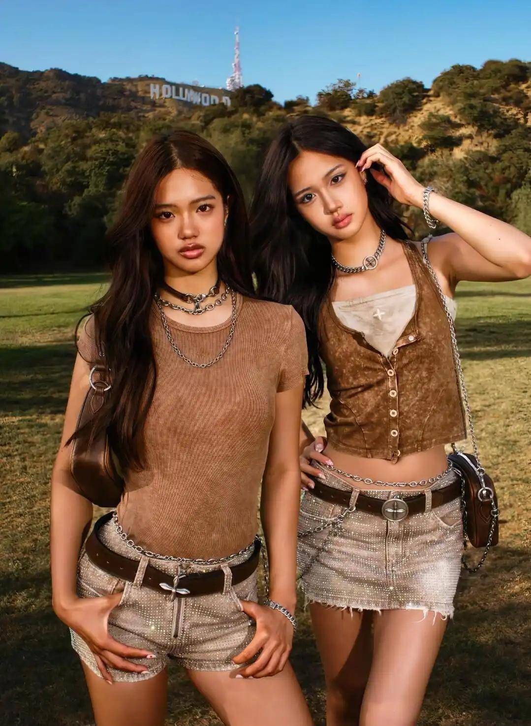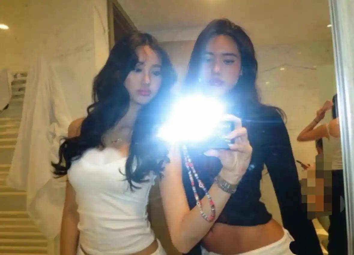照片中,Cayla与姐姐jaden身穿清凉服饰露面,两姐妹都留着一头乌黑秀丽的长发,在风的吹动下十分飘逸。